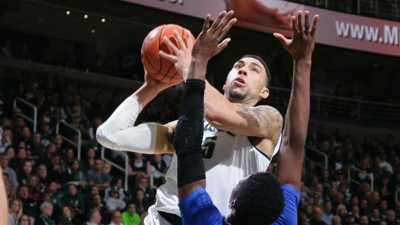 Spartans hold off Gators, move one win from matching best-ever start. nzel Valentine scored 17 points, and No. 1 Michigan State moved within one victory of matching the program's best start, beating Florida 58-52 on Saturday night to improve to 11-0.