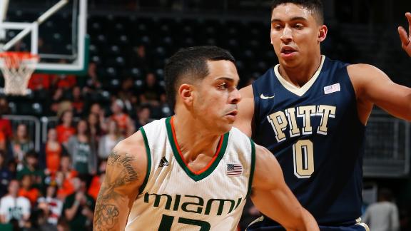 Late basket helps No. 12 Miami edge Pittsburgh 65-63. ard Angel Rodriguez scored on an offensive rebound with 1.4 seconds left Tuesday night, and No. 12 Miami edged Pittsburgh 65-63.