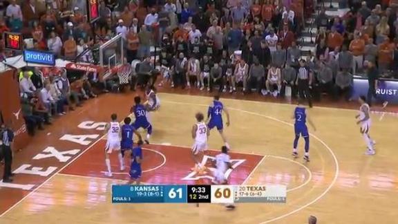 Allen jumper sends No. 20 Texas over No. 8 Kansas 79-76. Timmy Allen hit the go-ahead jumper, then Marcus Carr delivered the game-sealing steal and free throws.
