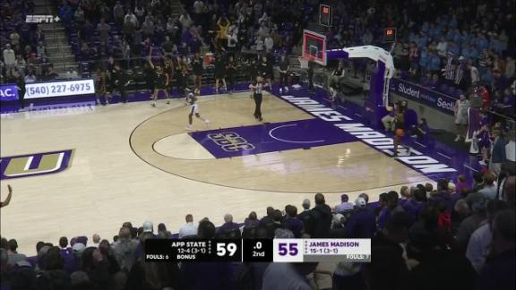 Tate scores 15 as Appalachian State knocks off James Madison 59-55. Myles Tate scored four points in the final 21 seconds and put up 15 points off of the bench to spark Appalachian State to a 59-55 victory against James Madison on Saturday night.