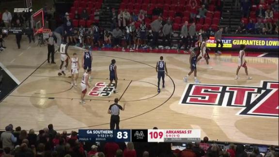 Arkansas State secures 109-83 win over Georgia Southern. Dyondre Dominguez scored 26 points as Arkansas State beat Georgia Southern 109-83 on Thursday night.