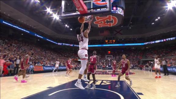 - +2 (17:56) Johni Broome made Layup. Assisted by Chad Baker-Mazara.55