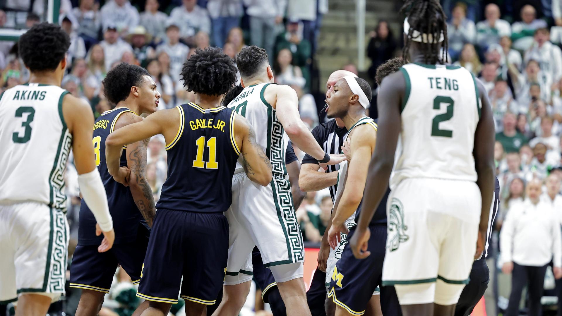 No. 8 Michigan State tops No. 17 Michigan 79-62, winning the 18-school Big Ten title by 3 games. Tre Holloman scored a career-high 20 points, Jase Richardson had 18 points and No. 8 Michigan State beat No. 17 Michigan 79-62 on Sunday.