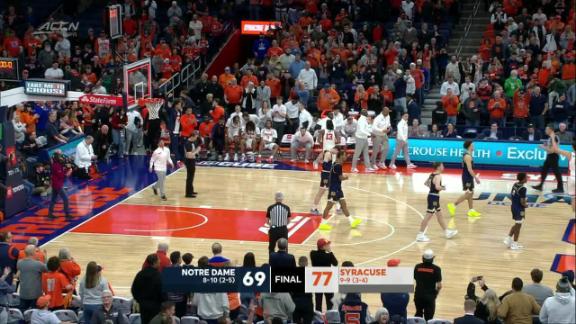 Starling scores 21 points, Syracuse rallies late to beat Notre Dame 77-69. J.J. Starling scored 21 points, Eddie Lampkin Jr. had a double-double and Syracuse rallied from a double-digit, first-half deficit to beat Notre Dame 77-69 on Saturday.