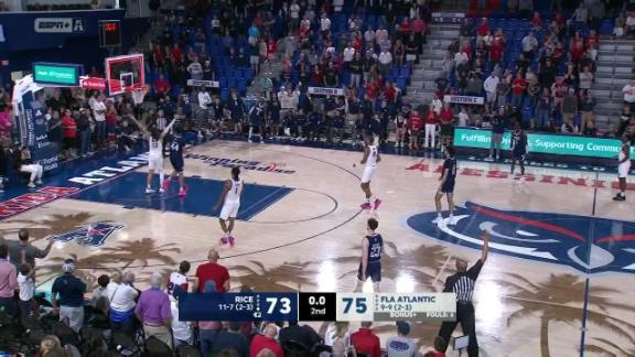 Miller's late free throws lift Florida Atlantic past Rice 75-73. Kaleb Glenn scored a layup to tie the game with under a minute remaining and Baba Miller added two free throws with two seconds left to lift Florida Atlantic to a 75-73 win over Rice on Sunday.