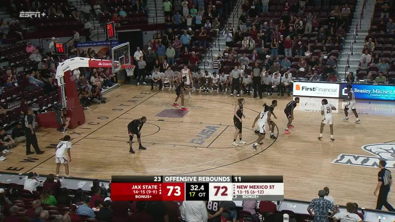 Jones scores 29, leads New Mexico State to 77-75 OT win over Jacksonville State. Jemel Jones led New Mexico State with 29 points, and hit a lead-taking 3-pointer with 26 seconds left in overtime to take down Jacksonville State 77-75 on Thursday.