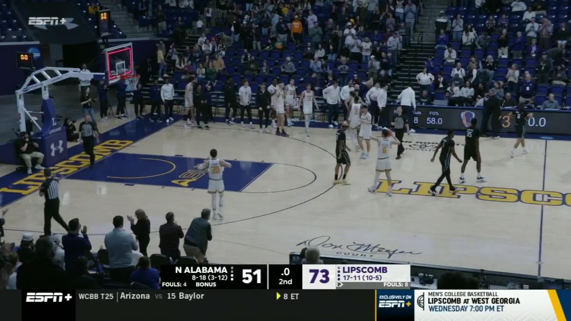 Candelino scores 16 as Lipscomb beats North Alabama 73-51. Ross Candelino had 16 points in Lipscomb's 73-51 victory over North Alabama on Saturday.