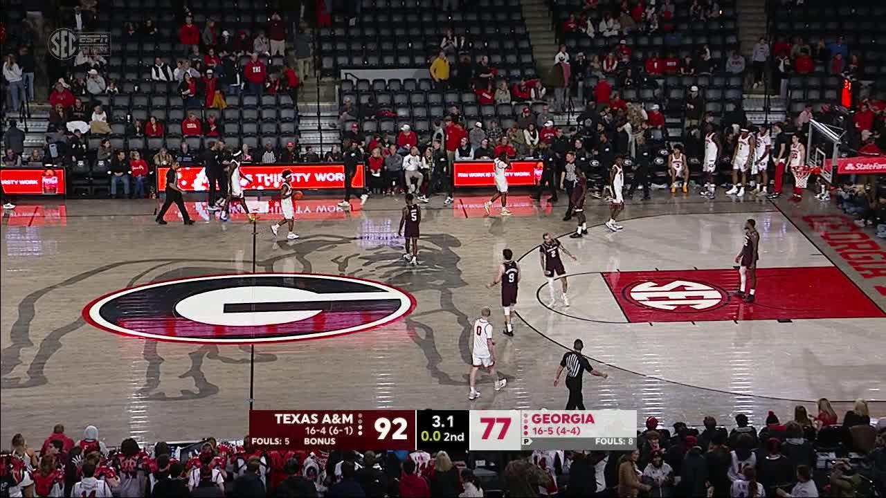Agee's double-double rallies Texas A&M over Georgia 92-77. Rashaun Agee posted 18 points and 15 rebounds as Texas A&M rolled past Georgia 92-77 on Saturday to stay atop the SEC standings.