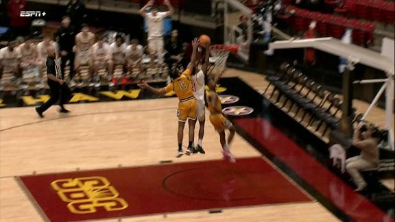 - (0:58) Djahi Binet misses 25-foot three point jumper.