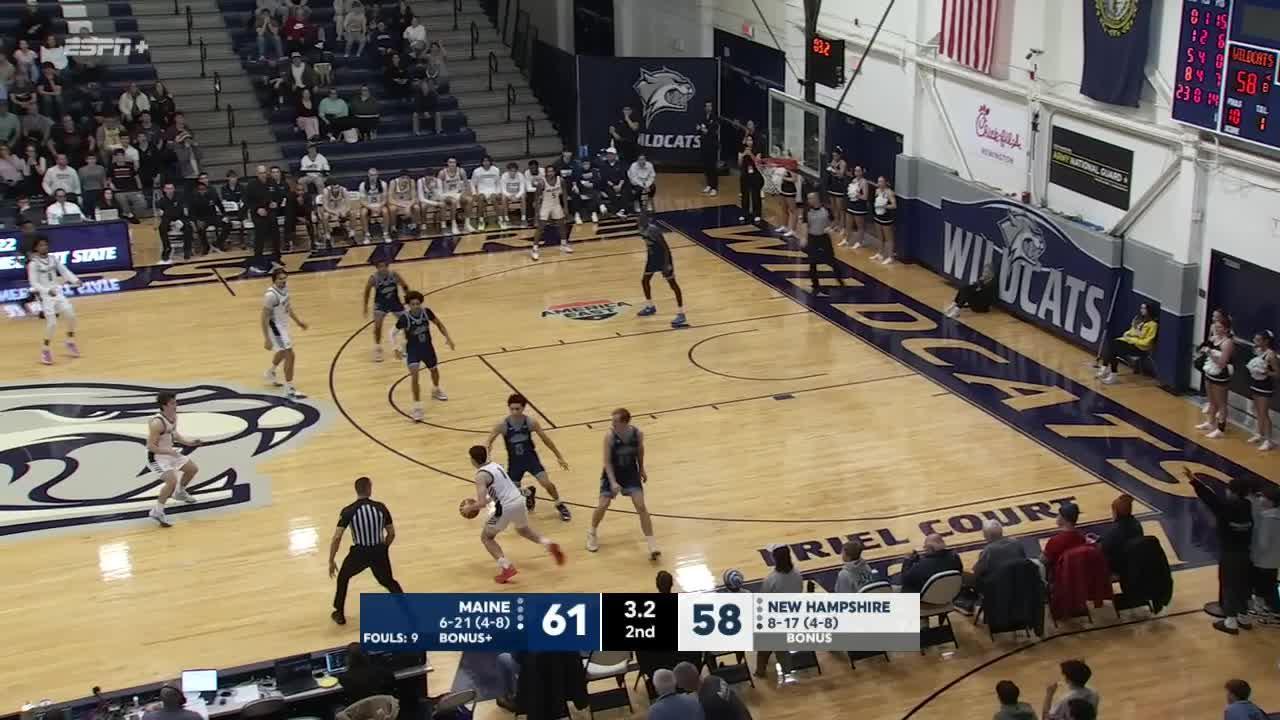 - (0:01) Maine Defensive Rebound.
