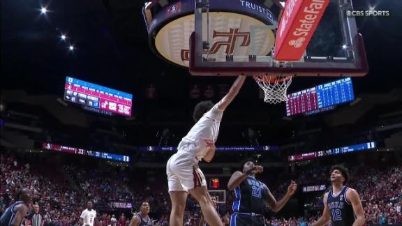 - (12:50) Caleb Foster misses 23-foot three point jumper.