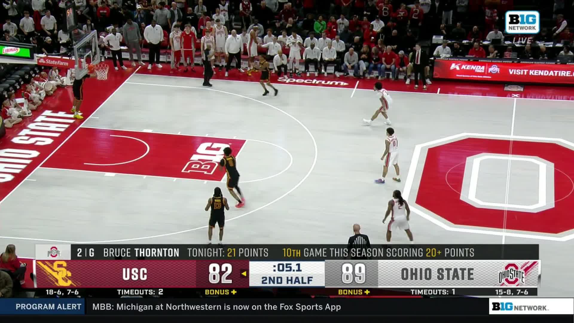 Thornton's 21 points lead Ohio State over USC 89-82. Bruce Thornton scored 21 points and hit two late throws to help Ohio State secure an 89-82 win over USC on Wednesday.