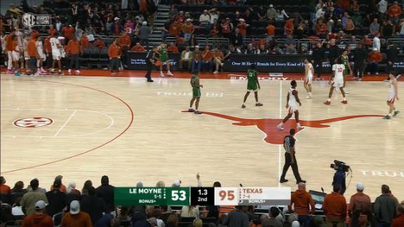 Mark spearheads Texas bounce back in largest win of the year trampling Le Moyne 95-53. Tramon Mark led six Texas players in double figures, scoring 18 points and Matas Vokietaitis recorded a double-double and the Longhorns beat Le Moyne 95-53 on Tuesday night.