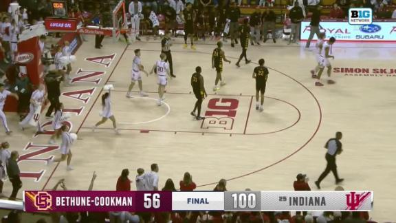 No. 25 Indiana returns from break and takes control quickly in 100-56 rout of Bethune-Cookman. Tucker DeVries scored 12 of his 20 points in the first half and Lamar Wilkerson added 18 points as No. 25 Indiana routed Bethune-Cookman 100-56 on Saturday.
