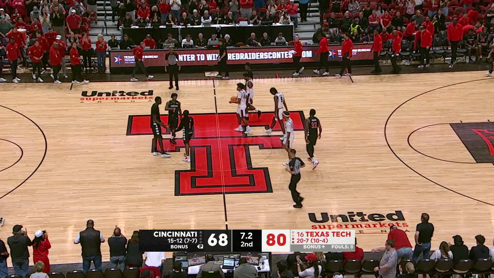 - (19:58) Jump Ball lost by Texas Tech.