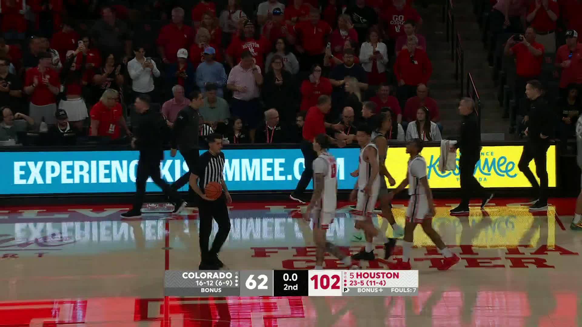 No. 5 Houston takes out the frustration of 3 straight losses with a 102-62 win over Colorado. Milos Uzan had 26 points and six assists, Joseph Tugler scored 14 and No. 5 Houston snapped its three-game losing streak with a 102-62 win over Colorado on Saturday.