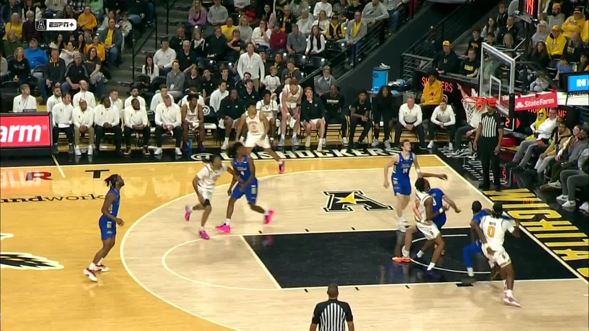 - (6:25) Tylen Riley misses alley oop dunk.