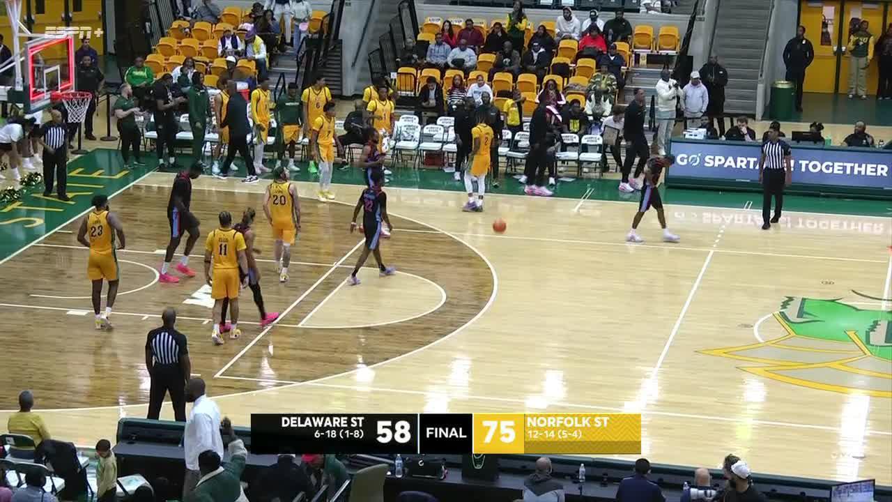 - (6:58) Zion Bethea misses 27-foot three point jumper.
