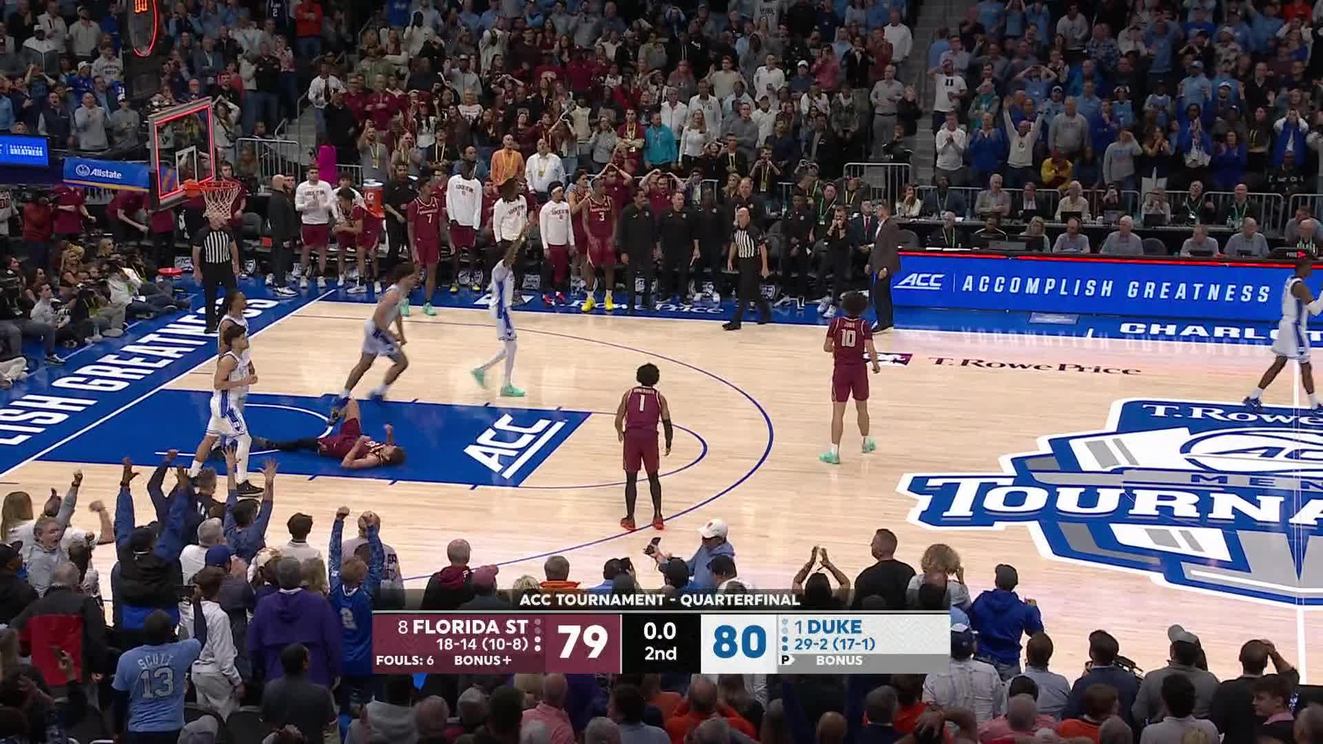 No. 1 Duke edges Florida State 80-79 in ACC Tournament after Seminoles' buzzer-beater rims out. Isaiah Evans made seven 3-pointers and finished with a career-high 32 points, Atlantic Coast Conference player of the year Cameron Boozer added 23...