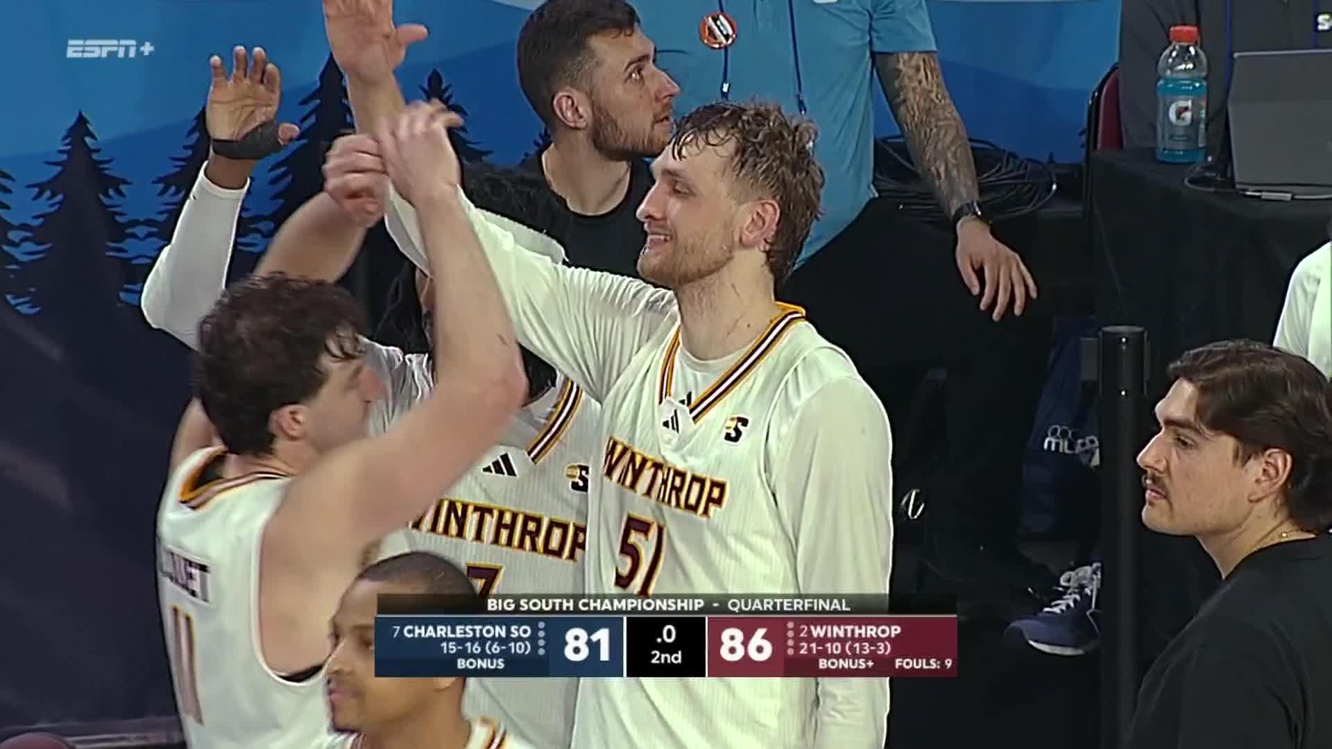 Duncomb leads Winthrop past Charleston Southern 86-81 in Big South Conference Tournament. Logan Duncomb led No. 2 seed Winthrop with 20 points, which included a layup with 16 seconds left, as the Eagles outscored the Charleston Southern Buccaneers in the final 45 seconds for an 86-81 win in quarterfinals of the Big South Conference...